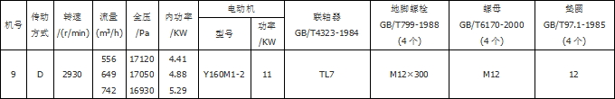 該鼓風機為單吸入式,9-04有№6.3D、7.1D、8C、9D、10D、11.2D、12.5D、5.6C、6.3C、7.1C、8C共11個機號;9-06有№6.3D、7.1D、8D、9D、10D、11.2D、12.5D共7個機號。